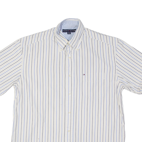 TOMMY HILFIGER Mens Flannel Shirt White Striped S