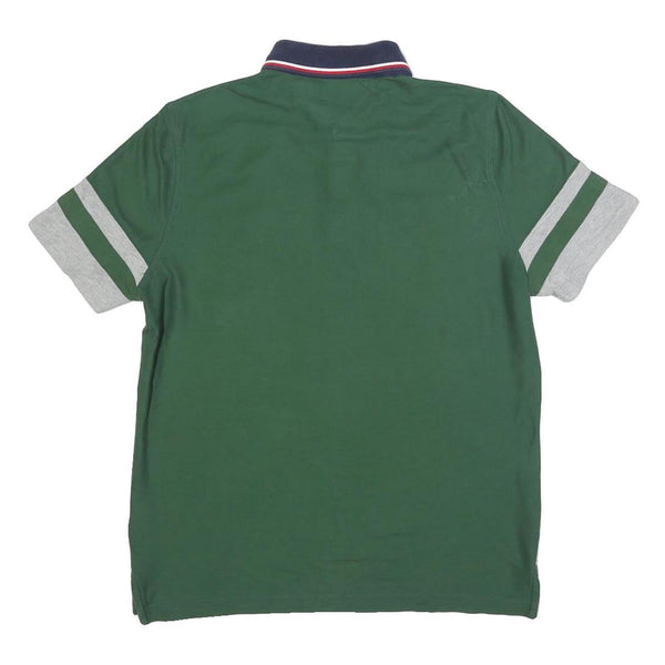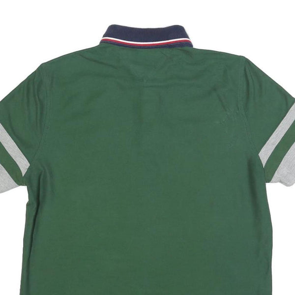 TOMMY HILFIGER Mens Green Navy Blue & Grey Contrast Sleeve Short Sleeve Polo