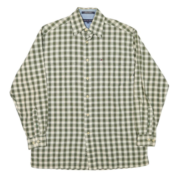 TOMMY HILFIGER Mens Green & White Check Shirt S Classic Cotton Blend Long Sleeve