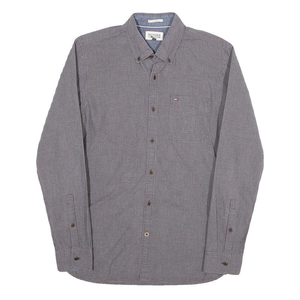 TOMMY HILFIGER Mens Grey Check Shirt S Hilfiger Denim Button Down Collar