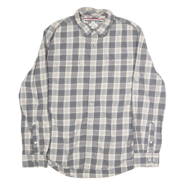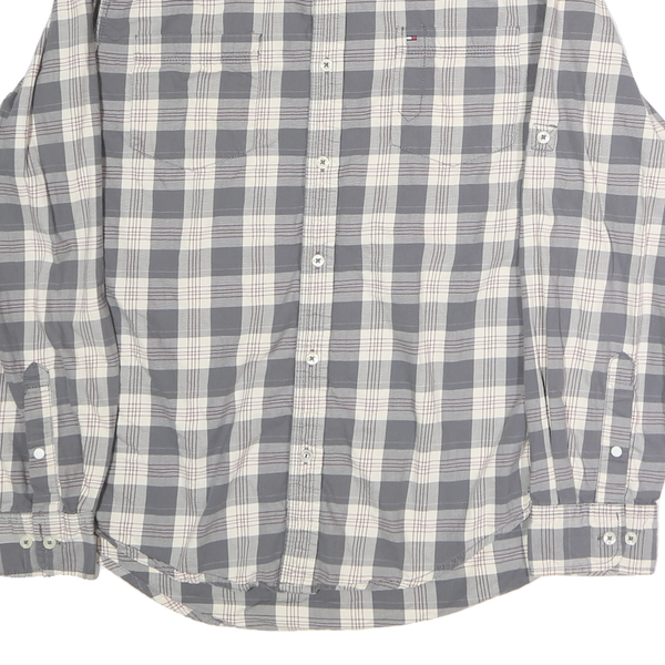 TOMMY HILFIGER Mens Grey & Cream Check Shirt L Cotton Long Sleeve Casual Fashion