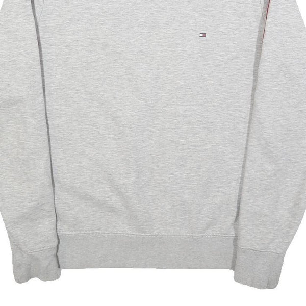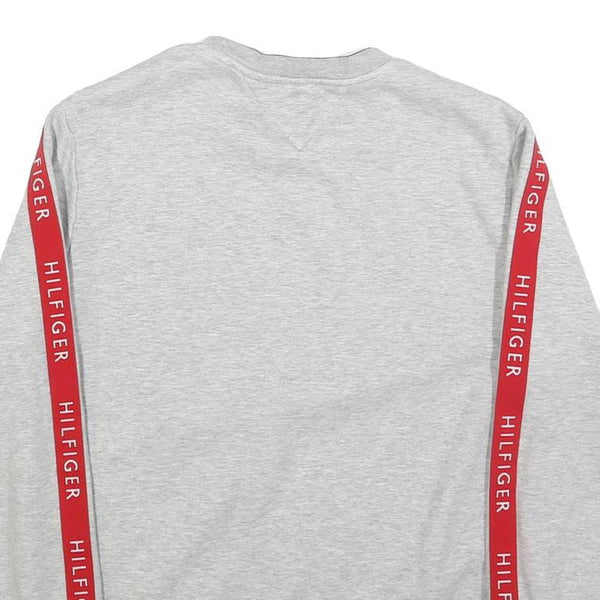 TOMMY HILFIGER Mens Grey Crew Neck M Cotton Sweatshirt with Branded Sleeve Tape