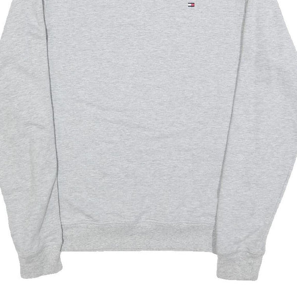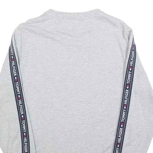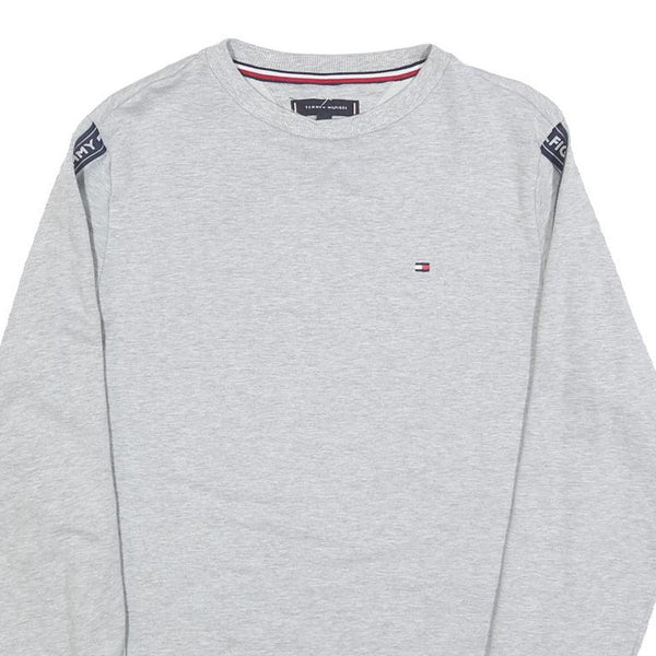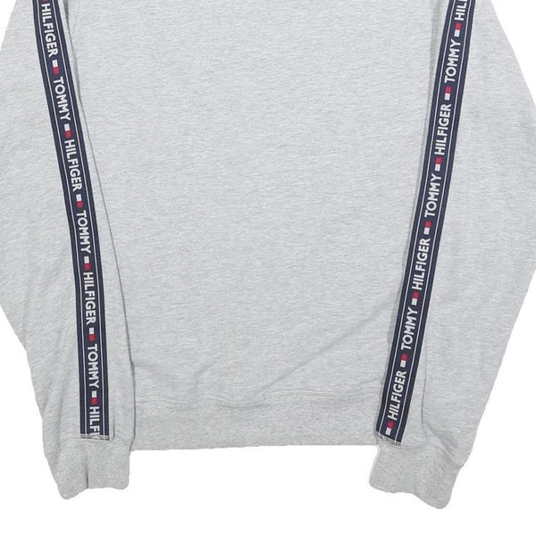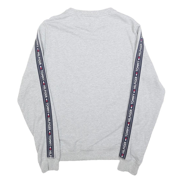 TOMMY HILFIGER Mens Grey Crew Neck Sweatshirt S Logo Tape Sleeves Cotton Blend