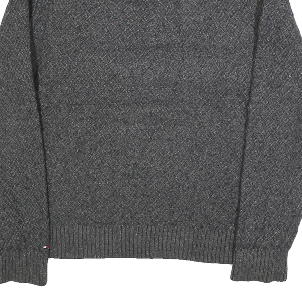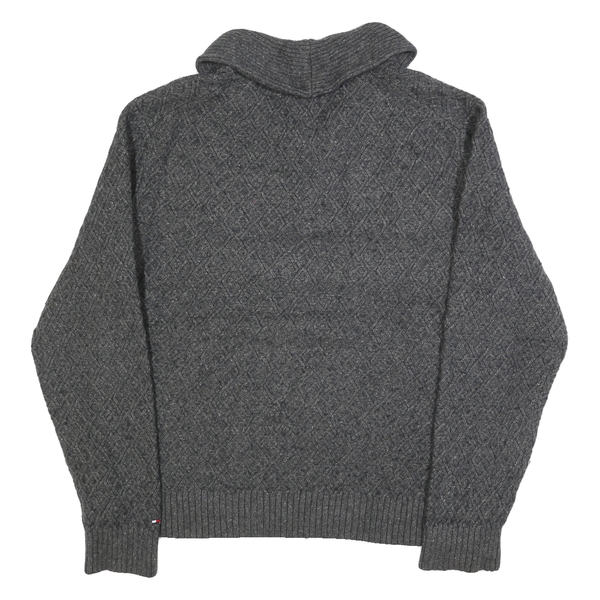 TOMMY HILFIGER Mens Grey Patterned Pullover Jumper Wool Blend XL Shawl Collar