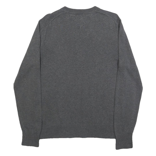 TOMMY HILFIGER Mens Grey Plain Cotton V-Neck Basic Knit Jumper M Casual Classic