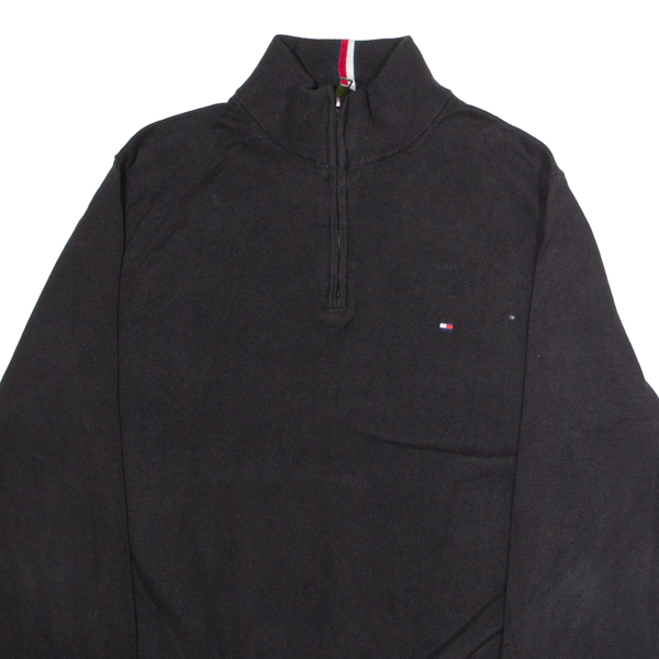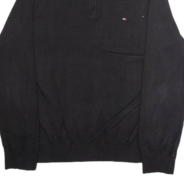 TOMMY HILFIGER Mens Jumper Black 1/4 Zip Tight Knit L