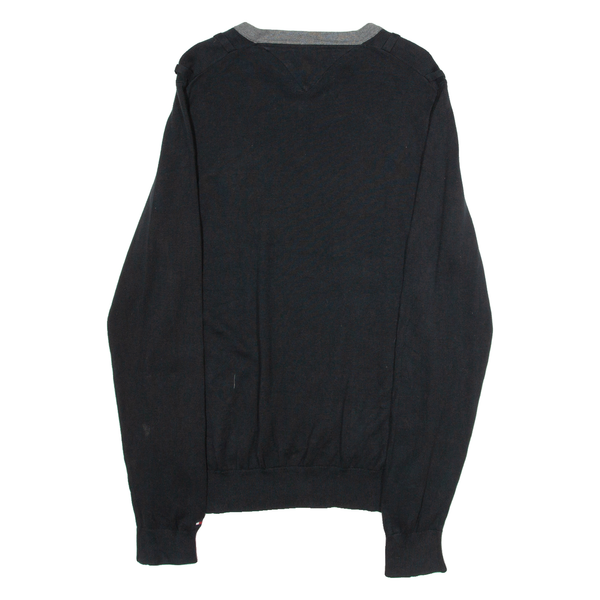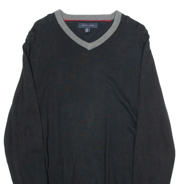 TOMMY HILFIGER Mens Jumper Black V-Neck Tight Knit M