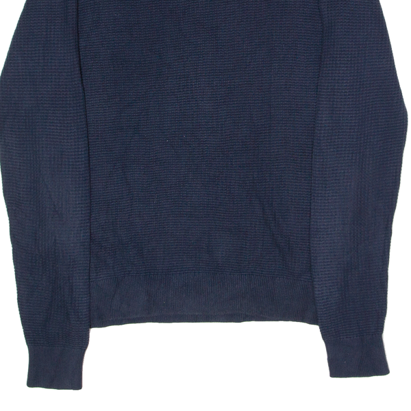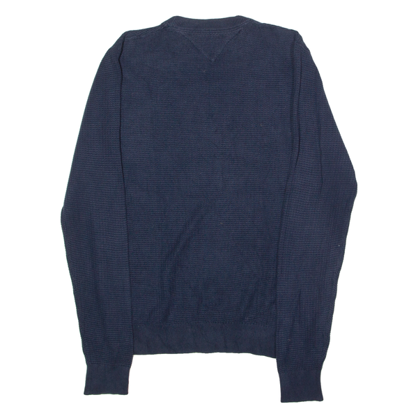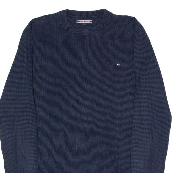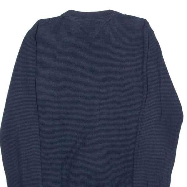 TOMMY HILFIGER Mens Jumper Blue Crew Neck Waffle Knit S