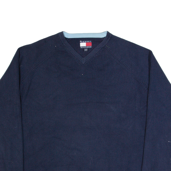 TOMMY HILFIGER Mens Jumper Blue V-Neck Tight Knit 2XL