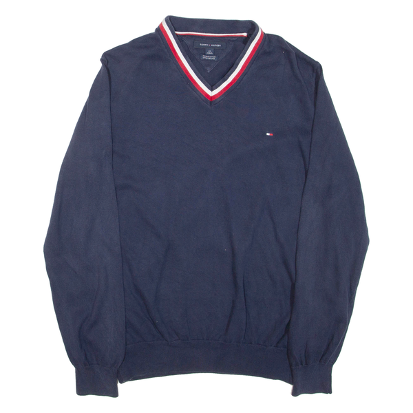 TOMMY HILFIGER Mens Jumper Blue V-Neck Tight Knit L