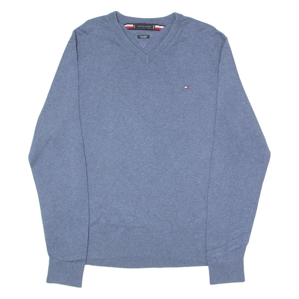 TOMMY HILFIGER Mens Jumper Blue V-Neck Tight Knit XL