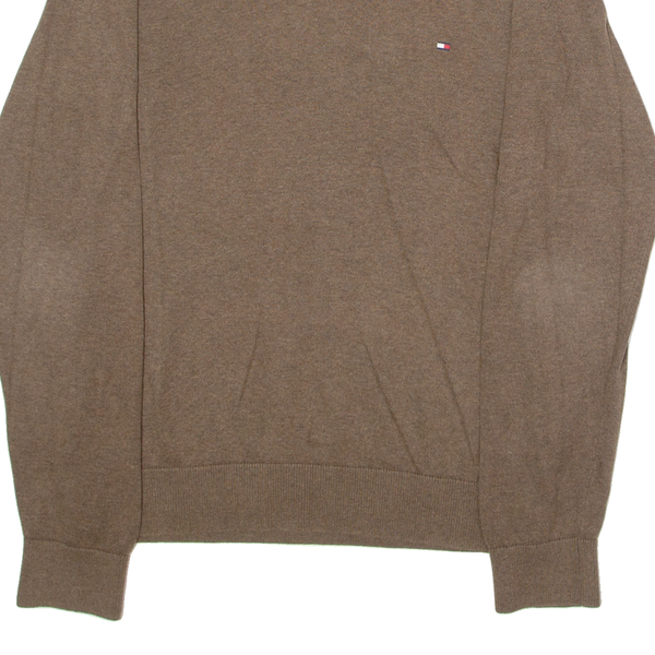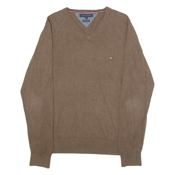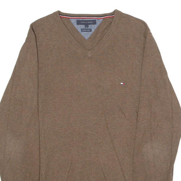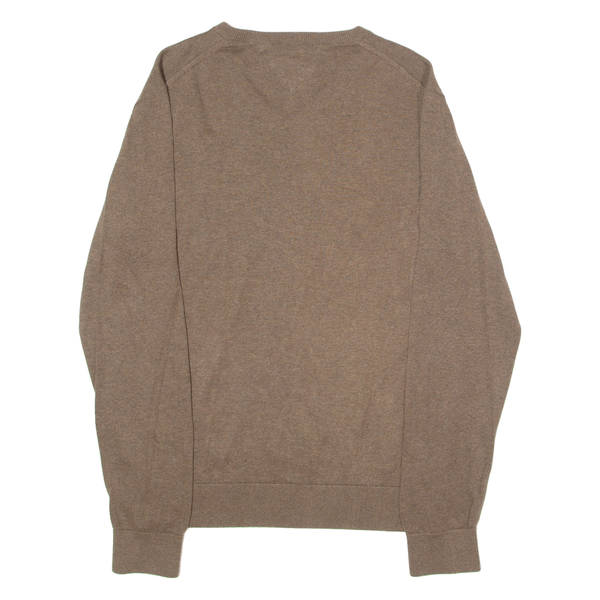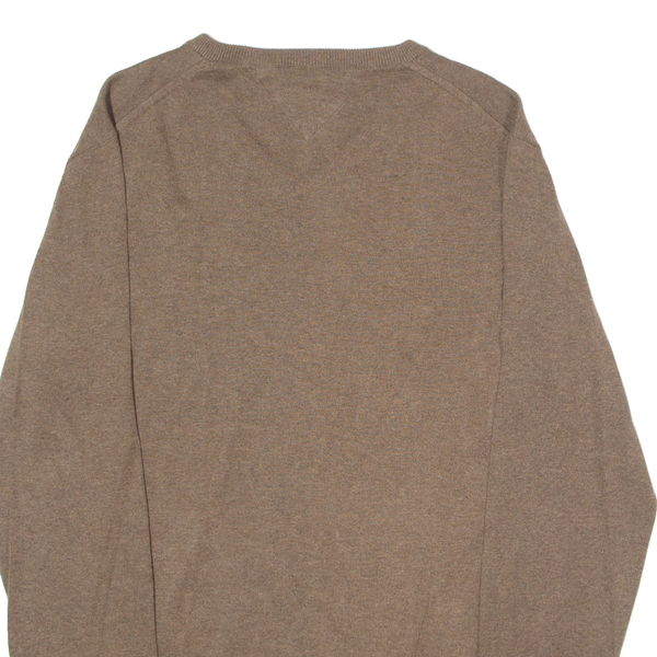 TOMMY HILFIGER Mens Jumper Brown V-Neck Tight Knit L