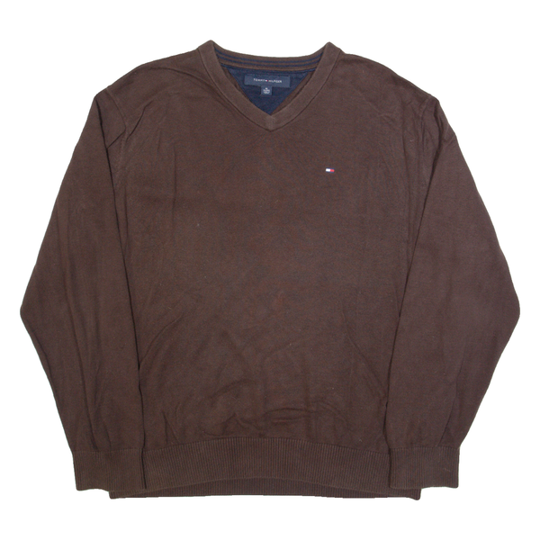 Home TOMMY HILFIGER Mens Jumper Brown V-Neck Tight Knit XL