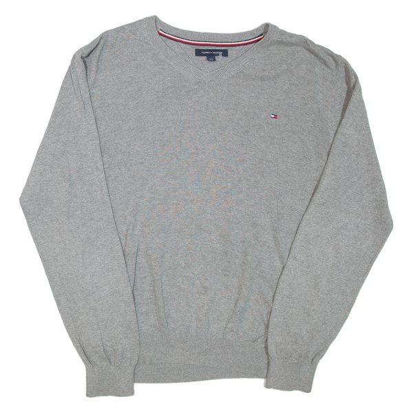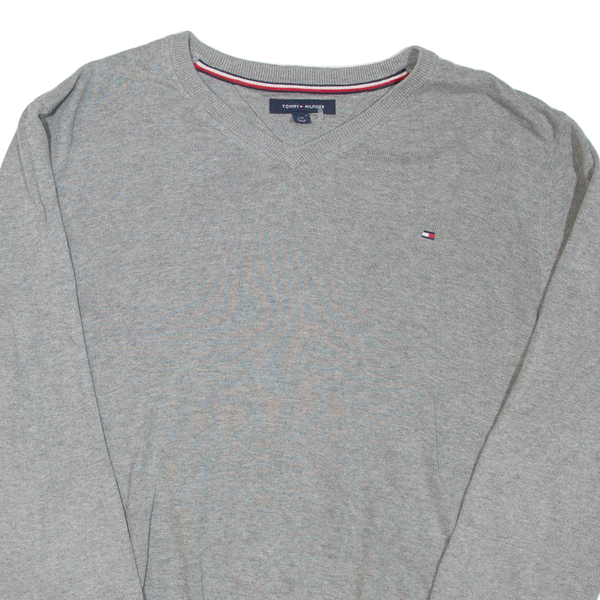 TOMMY HILFIGER Mens Jumper Grey V-Neck Tight Knit L