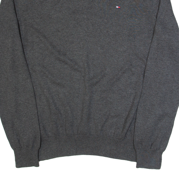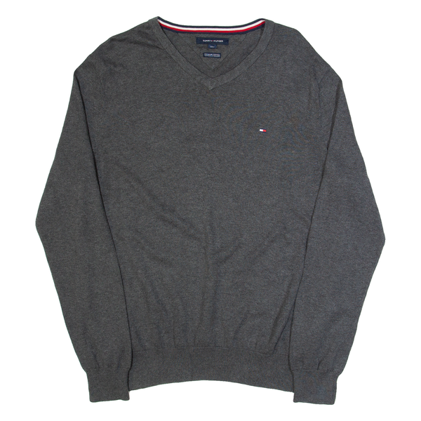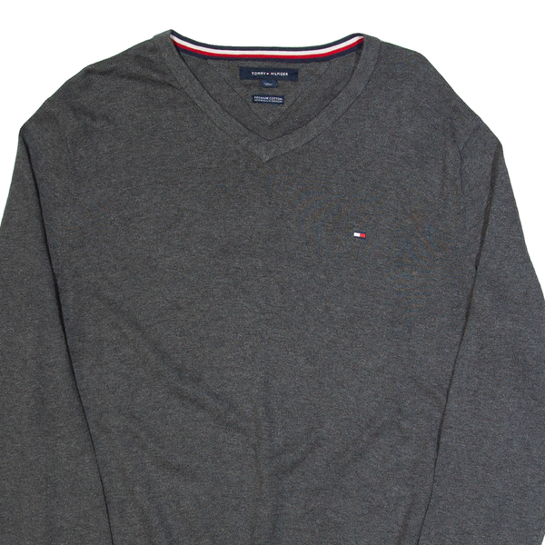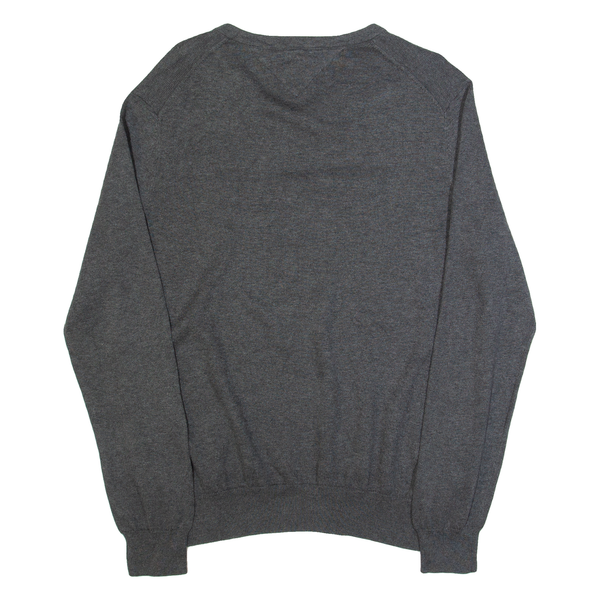 TOMMY HILFIGER Mens Jumper Grey V-Neck Tight Knit M