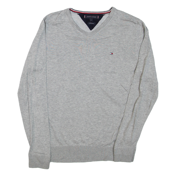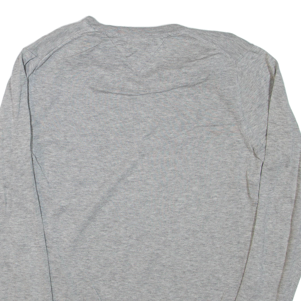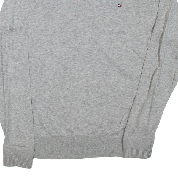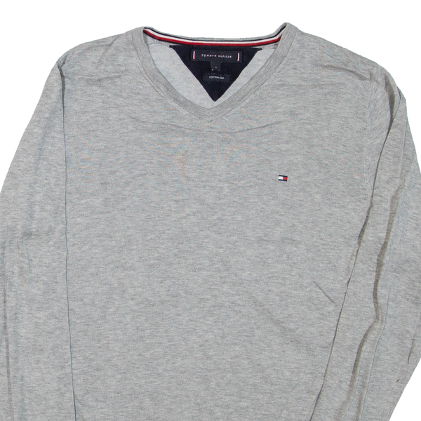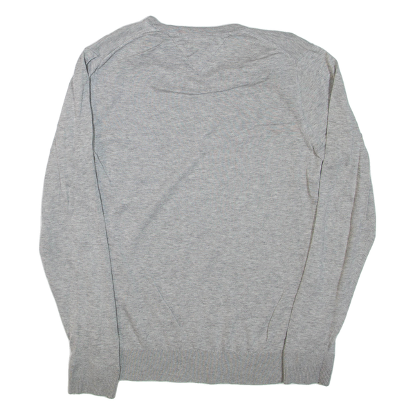 TOMMY HILFIGER Mens Jumper Grey V-Neck Tight Knit S