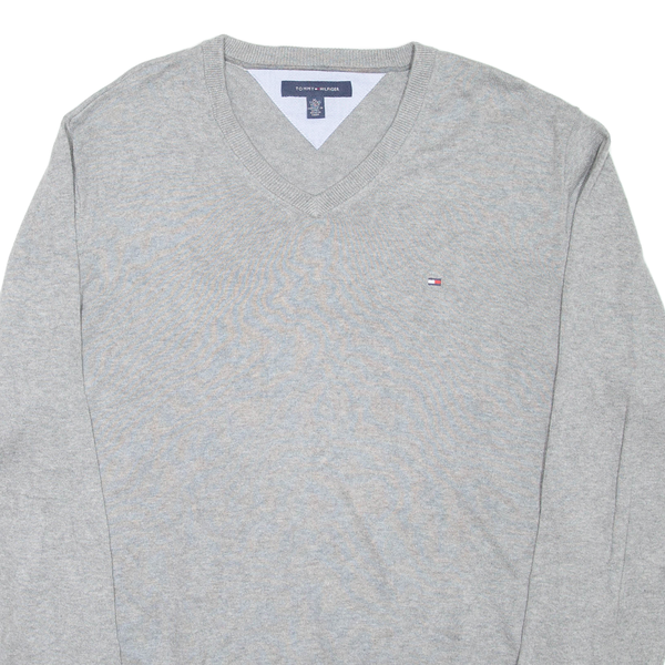 TOMMY HILFIGER Mens Jumper Grey V-Neck Tight Knit XL