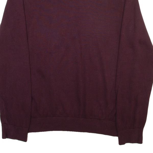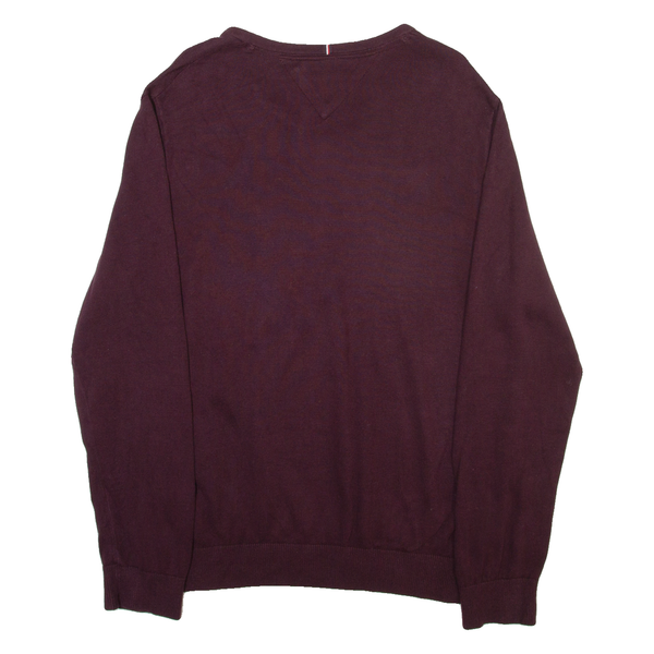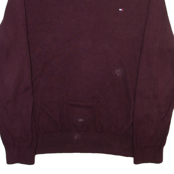 TOMMY HILFIGER Mens Jumper Maroon V-Neck Tight Knit M