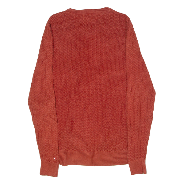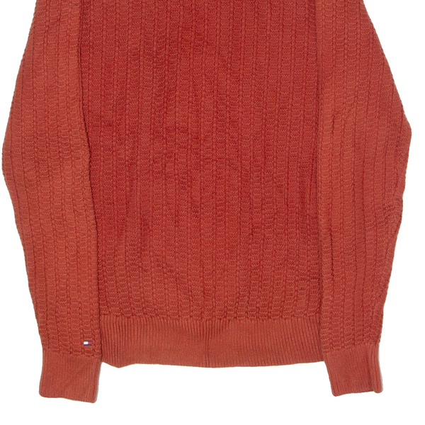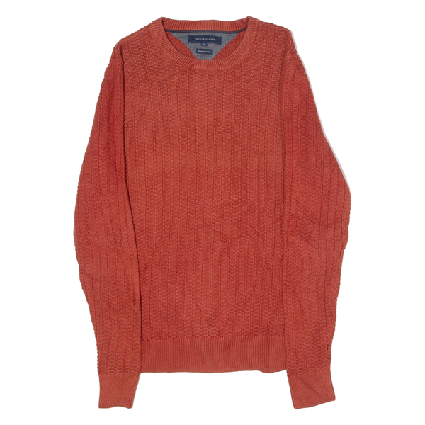 TOMMY HILFIGER Mens Jumper Orange Crew Neck Waffle Knit M