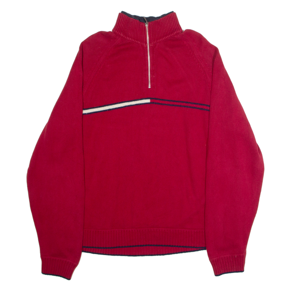TOMMY HILFIGER Mens Jumper Red 1/4 Zip Tight Knit XL