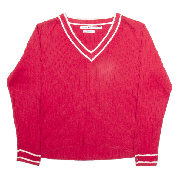 TOMMY HILFIGER Mens Jumper Red V-Neck Tight Knit L