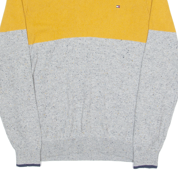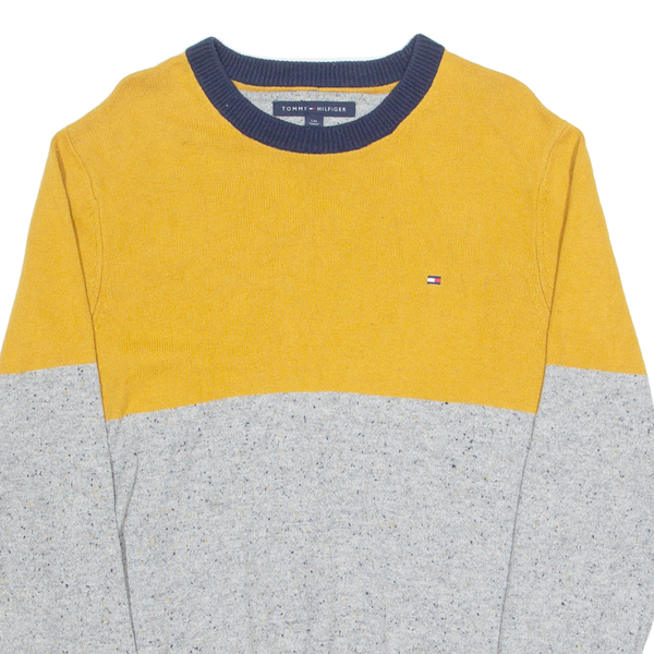 TOMMY HILFIGER Mens Jumper Yellow Crew Neck Tight Knit L