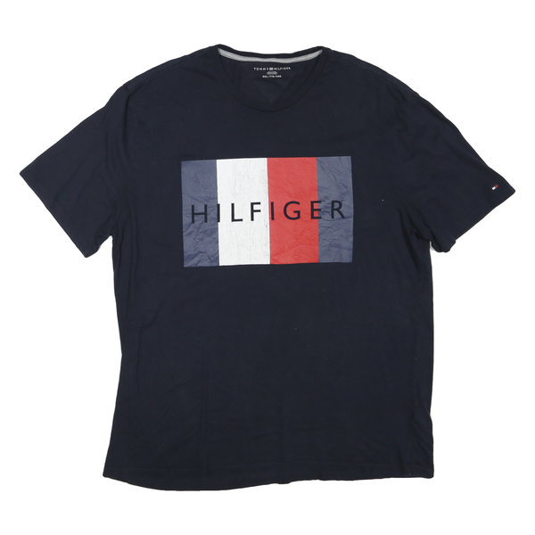 TOMMY HILFIGER Mens Navy Blue Graphic T-Shirt 2XL Short Sleeve V-Neck Cotton