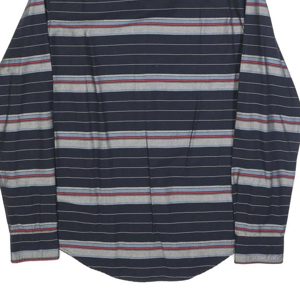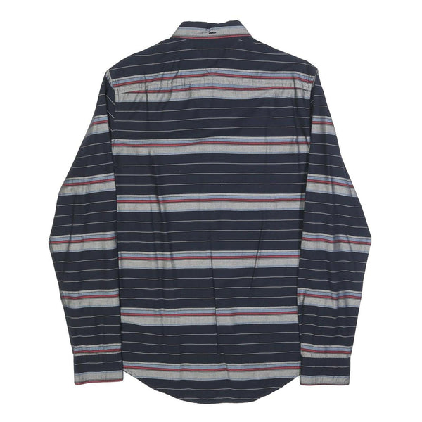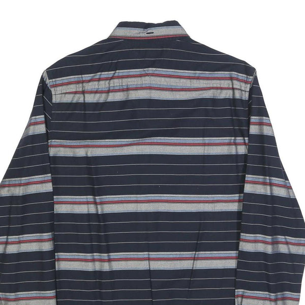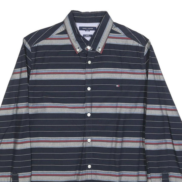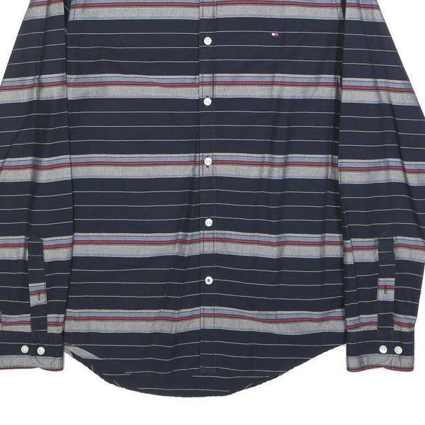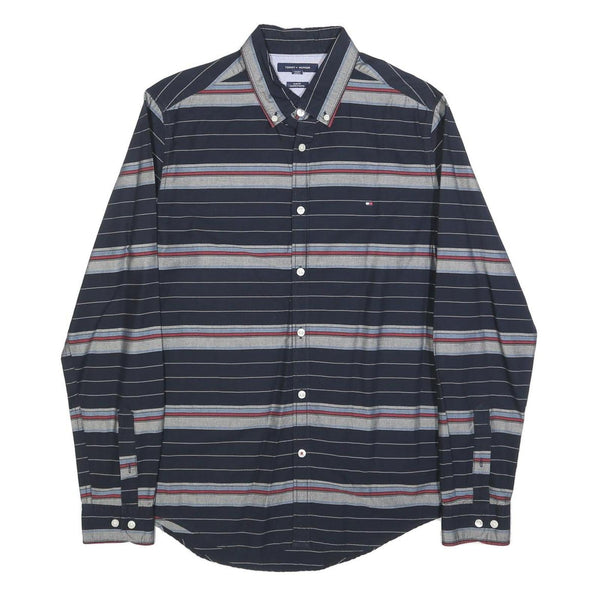 TOMMY HILFIGER Mens Navy Blue & Grey Striped Cotton Blend Shirt M Button-Down