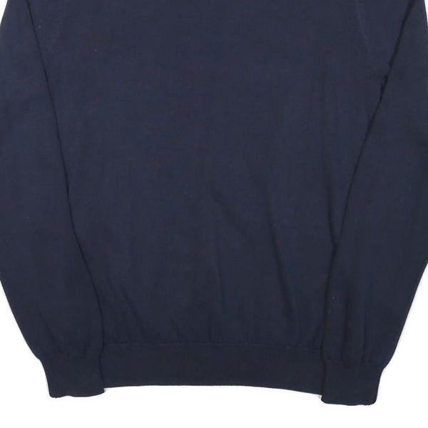 TOMMY HILFIGER Mens Navy Blue Plain Cotton Blend Jumper V-Neck Basic Knit M