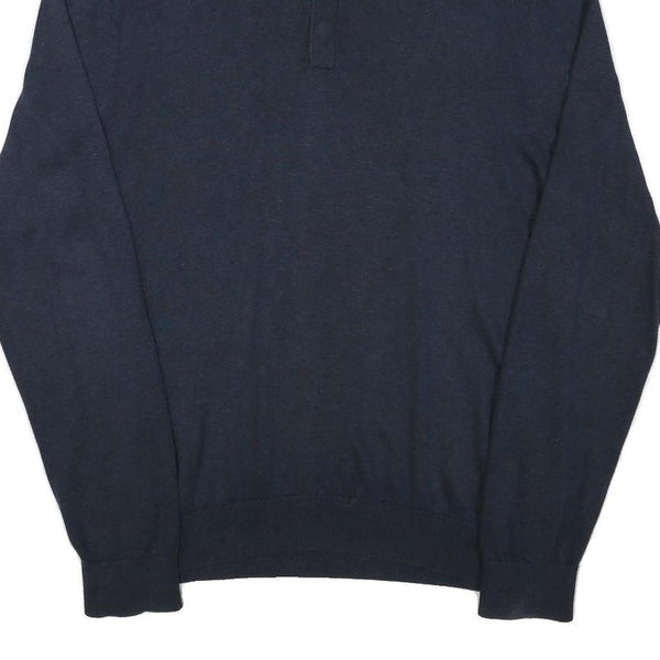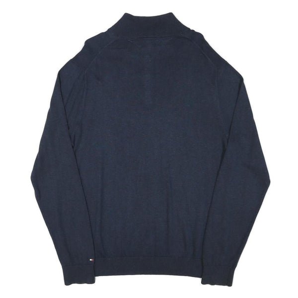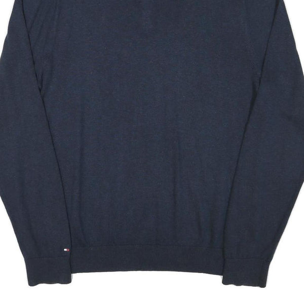 TOMMY HILFIGER Mens Navy Plain Pullover Roll Neck Basic Knit L Wool Blend Jumper