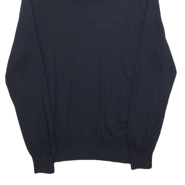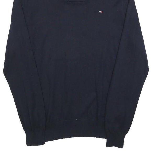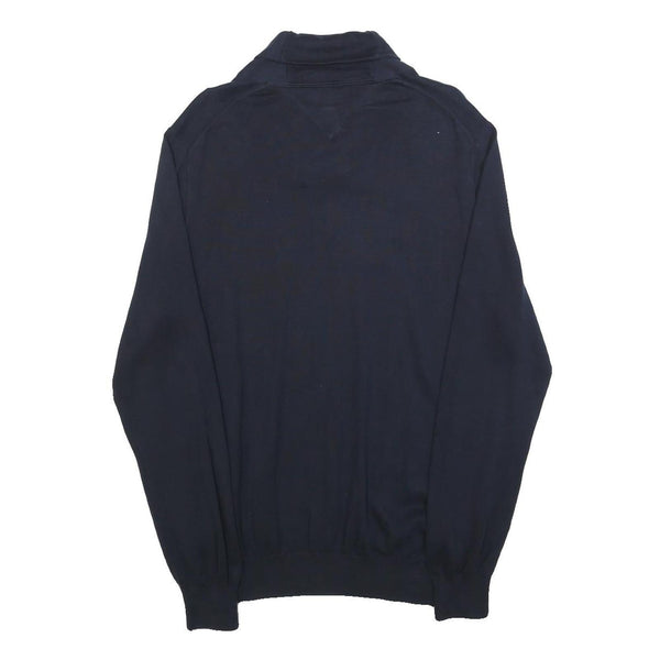 TOMMY HILFIGER Mens Navy Plain Pullover Shawl Collar Cotton Jumper M Stylish