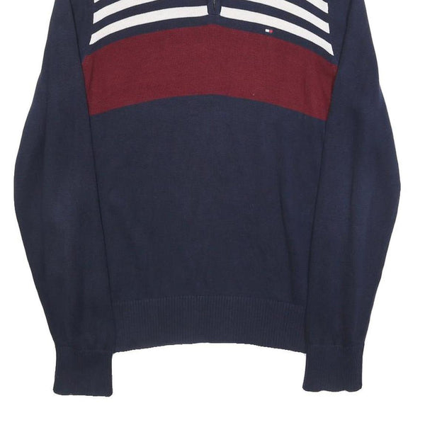 TOMMY HILFIGER Mens Navy & White Stripe Red Colourblock Patterned Cotton Jumper
