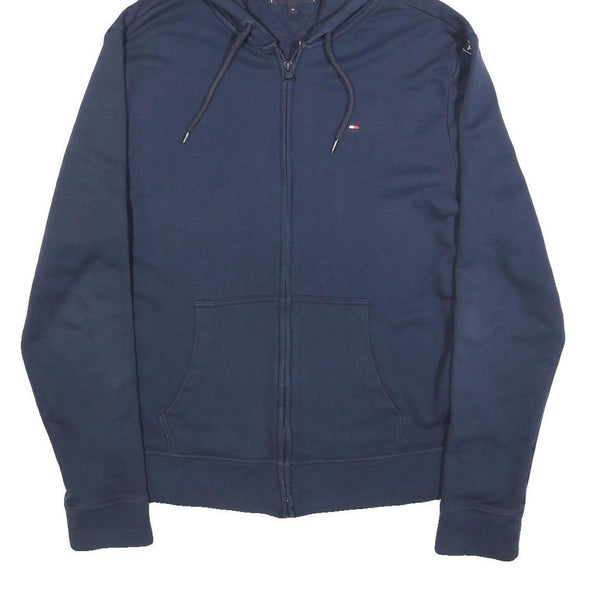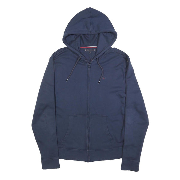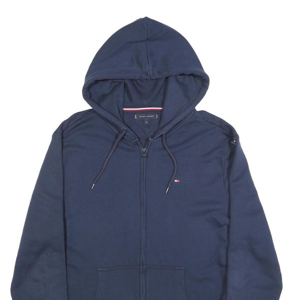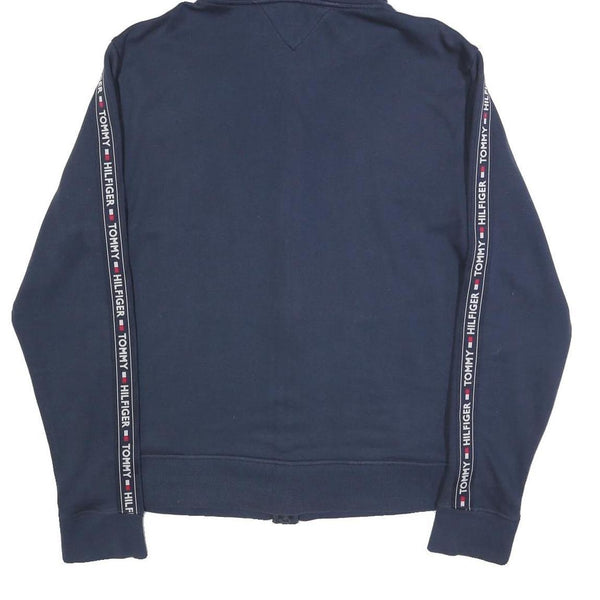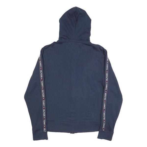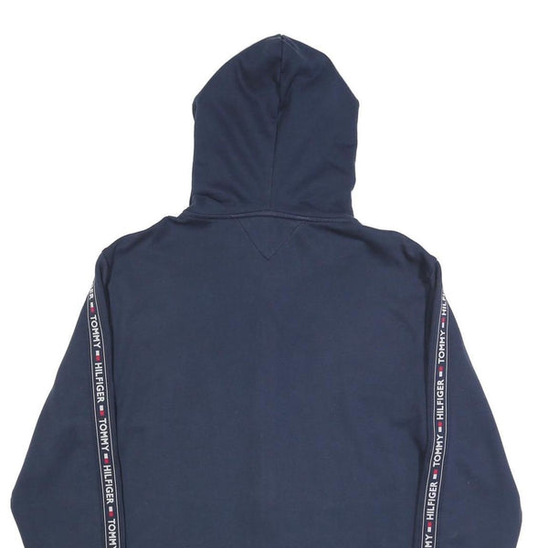 TOMMY HILFIGER Mens Navy Zip Up Hoodie XL Branded Sleeve Tape Casual