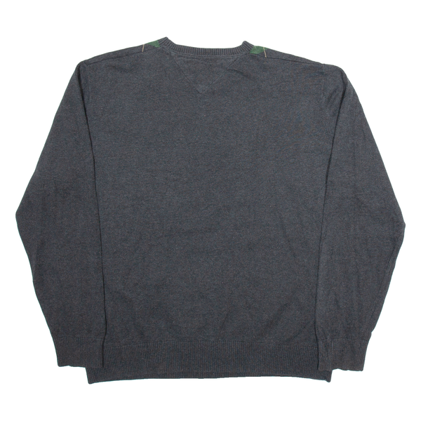 Home TOMMY HILFIGER Mens Patterned Jumper Grey Argyle V-Neck Tight Knit XL