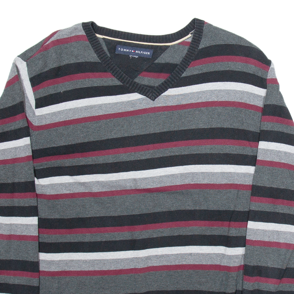 Home TOMMY HILFIGER Mens Patterned Jumper Grey Camouflage V-Neck Tight Knit M