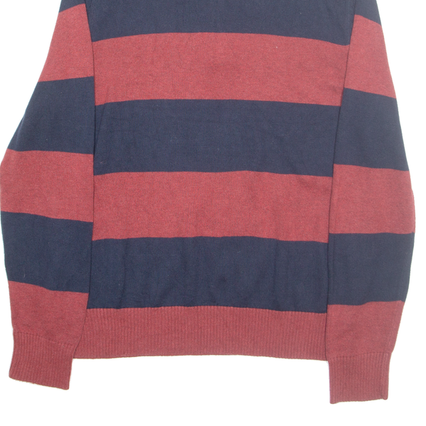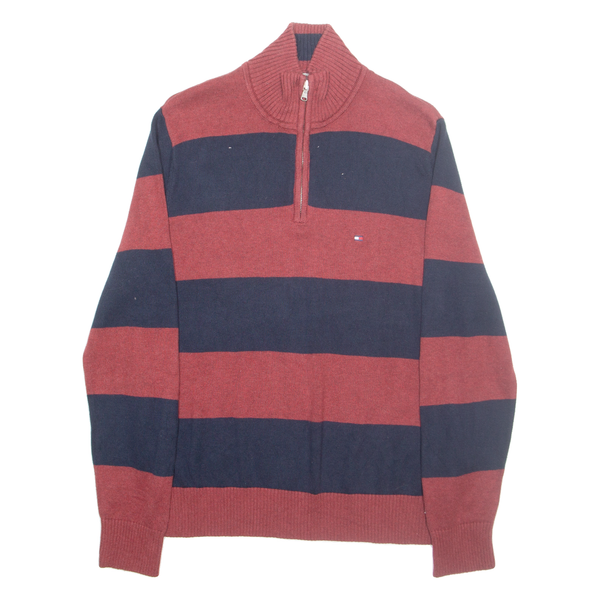 Home TOMMY HILFIGER Mens Patterned Jumper Red Striped 1/4 Zip Tight Knit S