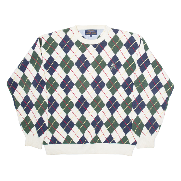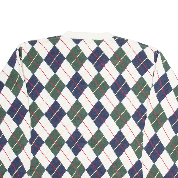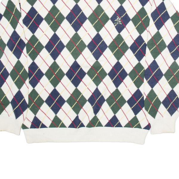TOMMY HILFIGER Mens Patterned Jumper White Argyle Tight Knit L