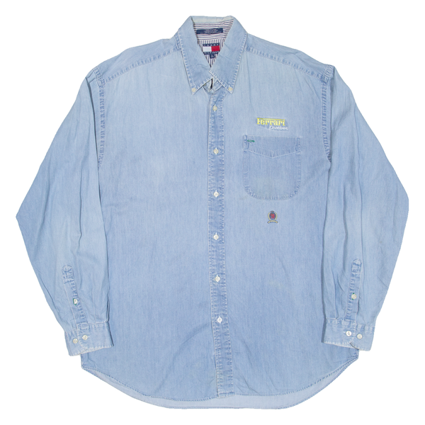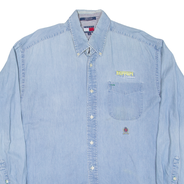 TOMMY HILFIGER Mens Plain Shirt Blue Long Sleeve L