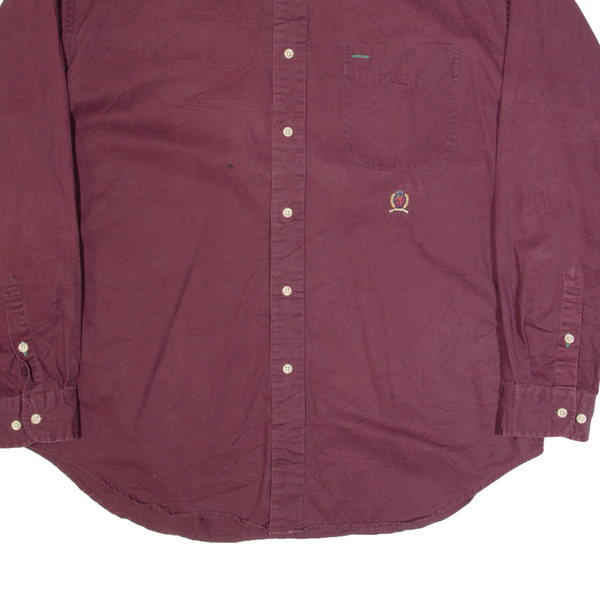 TOMMY HILFIGER Mens Plain Shirt Maroon 90s Long Sleeve L