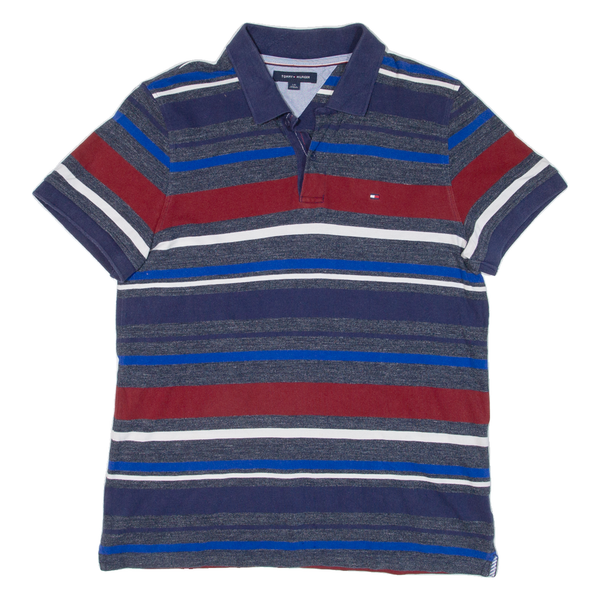 TOMMY HILFIGER Mens Polo Shirt Blue Striped L