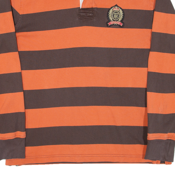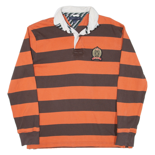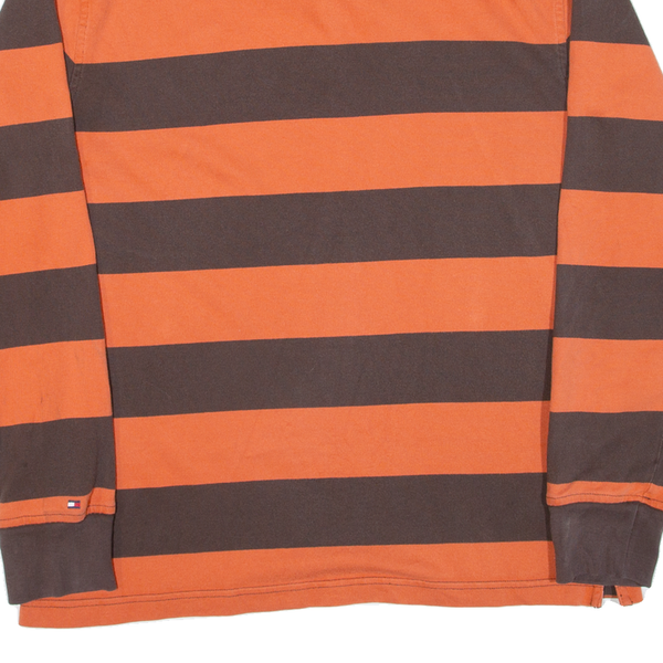 TOMMY HILFIGER Mens Polo Shirt Orange Striped Long Sleeve M