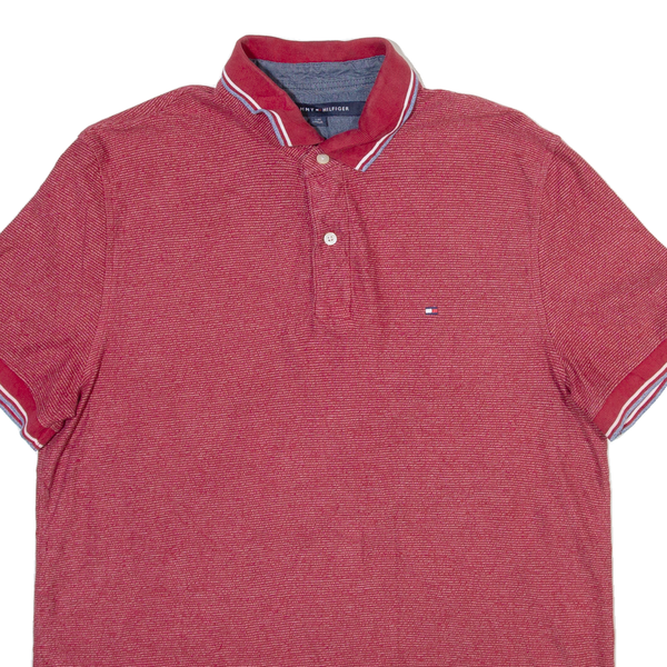 TOMMY HILFIGER Mens Polo Shirt Red Striped L