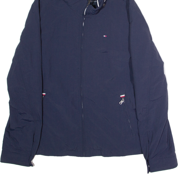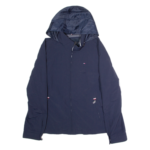 TOMMY HILFIGER Mens Rain Jacket Blue Nylon Hooded L