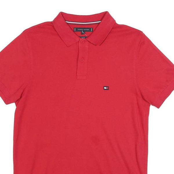 TOMMY HILFIGER Mens Red Short Sleeve Plain Polo Shirt S Casual
