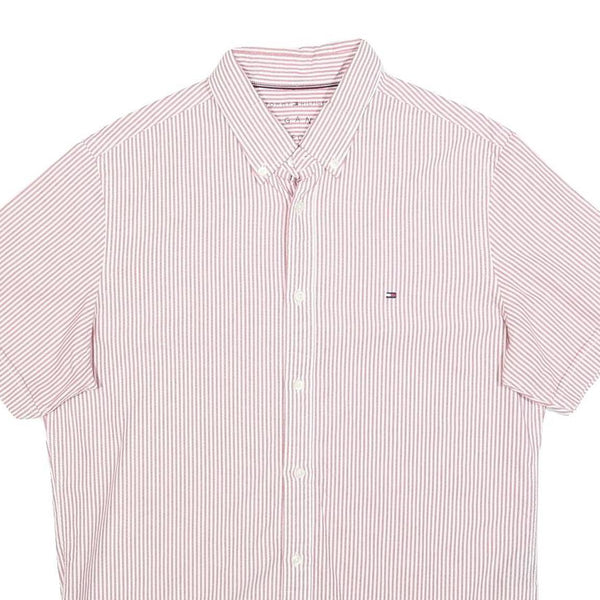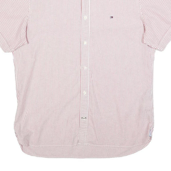 TOMMY HILFIGER Mens Red & White Striped Short Sleeve Shirt L Classic Button-Down