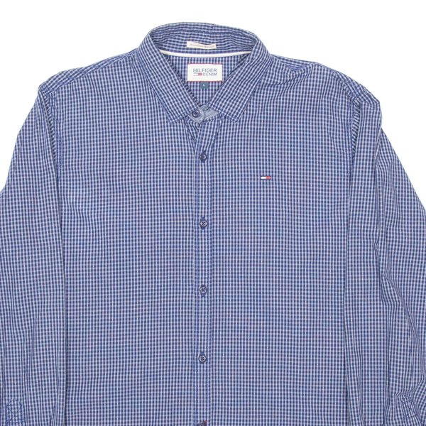 TOMMY HILFIGER Mens Shirt Blue Plaid Long Sleeve L