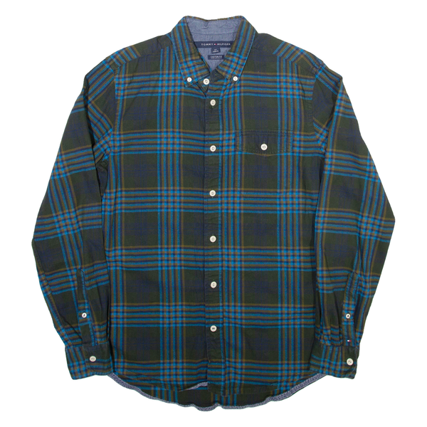 TOMMY HILFIGER Mens Shirt Green Plaid Long Sleeve S