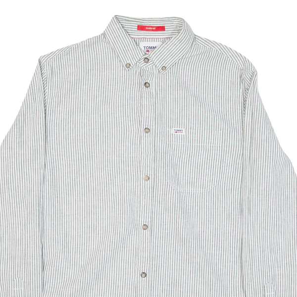 TOMMY HILFIGER Mens Shirt Green Striped Long Sleeve S