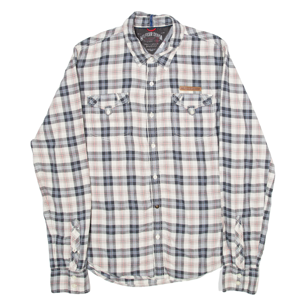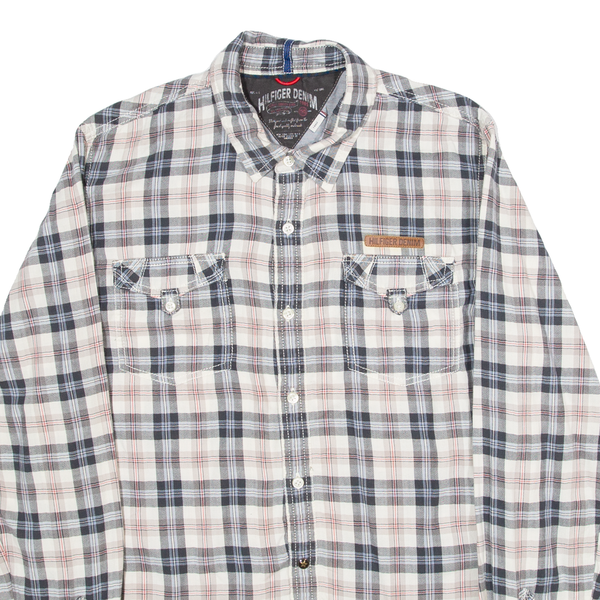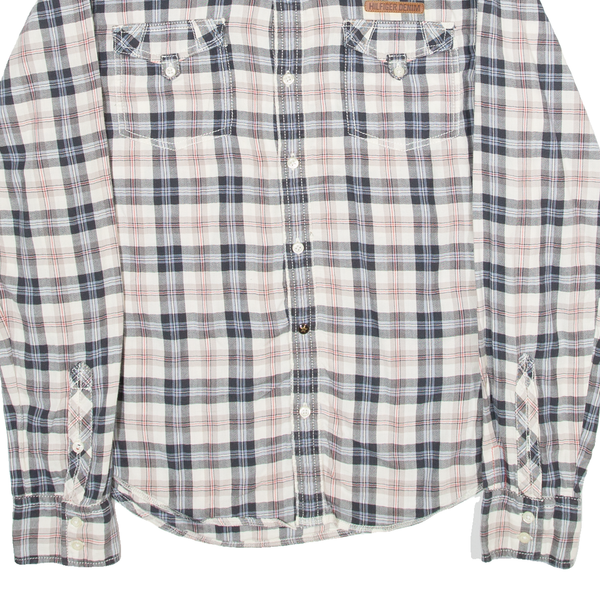 TOMMY HILFIGER Mens Shirt Grey Plaid Long Sleeve L