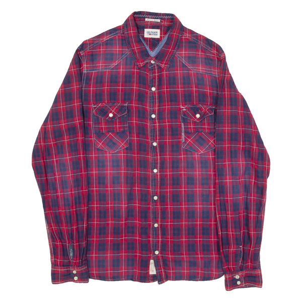 TOMMY HILFIGER Mens Shirt Red Check Long Sleeve L